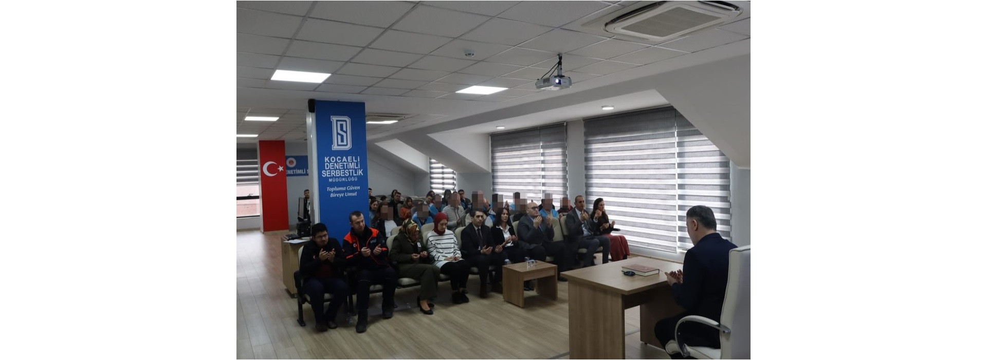 Kocaeli Cumhuriyet Başsavcılığı Denetimli Serbestlik Müdürlüğü, Kocaeli İl Müftülüğü ile Afet ve Acil Durum İl Müdürlüğünün işbirliğinde, 06 Şubat 2023 tarihinde meydana gelen Kahramanmaraş merkezli depremlerin 3. yıl dönümü münasebetiyle Kocaeli Denetimli Serbestlik Müdürlüğünde 06.02.2026 tarihinde anma programı gerçekleştirildi. Programa; Kocaeli Denetimli Serbestlik Müdür Yardımcıları Esra Şahin, Rahmettin Türkoğlu, Kurum Şefi Bedirhan Çoban, kurum çalışanları ve yükümlüler katıldı. Program; Kocaeli İzmit Hasanağa Camii İmam Hatibi Adem Aslım’ın Kur’an-ı Kerim tilaveti ile başladı. Kurum Müdür Yardımcısı Esra Şahin’in selamlama konuşması ile devam etti. Müdürlüğümüzde görevli Sosyolog Betül Yeğin, günün anlam ve önemini ifade eden “Deprem” temalı şiirini okudu. Kocaeli Afet ve Acil Durum İl Müdürlüğünde görevli eğitmen Osman Araç tarafından yapılan, 6 Şubat depremi ve Depreme Hazırlık konulu sunumda; Afet bilinci, deprem öncesi, deprem sırasında ve sonrasında yapılması gerekenler hakkında bilgiler verildi. Program, Kurum Vaizi Nafiz Karaaslan tarafından deprem şehitleri ve depremzedeler için yapılan dua ve soruların yanıtlanması ile sona erdi.