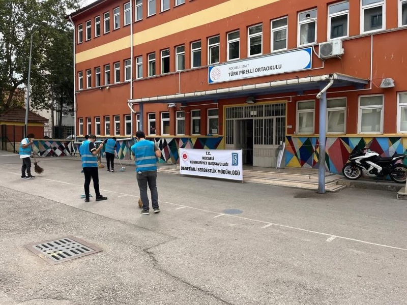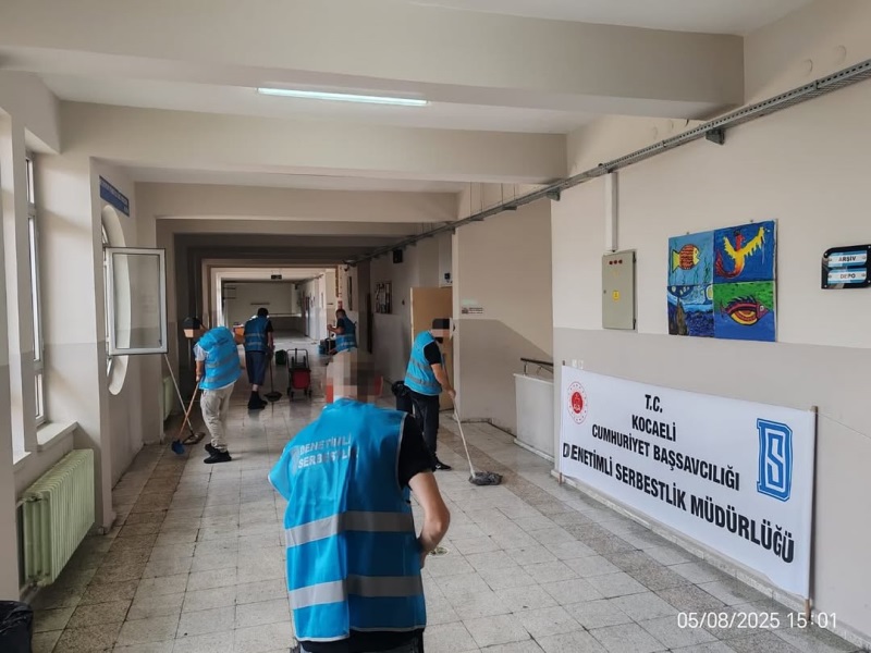 Kocaeli Cumhuriyet Başsavcılığı Denetimli Serbestlik Müdürlüğü, Kocaeli Büyükşehir Belediye Başkanlığı ve Kocaeli İl Milli Eğitim Müdürlüğü’nün işbirliğinde, ağustos ayı içerisinde yeni eğitim-öğretim yılına hazırlık ve eğitim kurumlarına destek olmak amacıyla, haklarında kamu yararına ücretsiz çalışma tedbiri verilen denetimi serbestlik yükümlüleri tarafından 41(kırk bir) okulun bina ve çevre temizliği ile 7(yedi) okulun boya ve tadilat işleri yapıldı. Okul yöneticileri, yapılan çalışmadan dolayı memnuniyetlerini ifade etti. Yükümlüler ise; eğitime destek olmanın onurunu yaşadıklarını ifade ettiler.